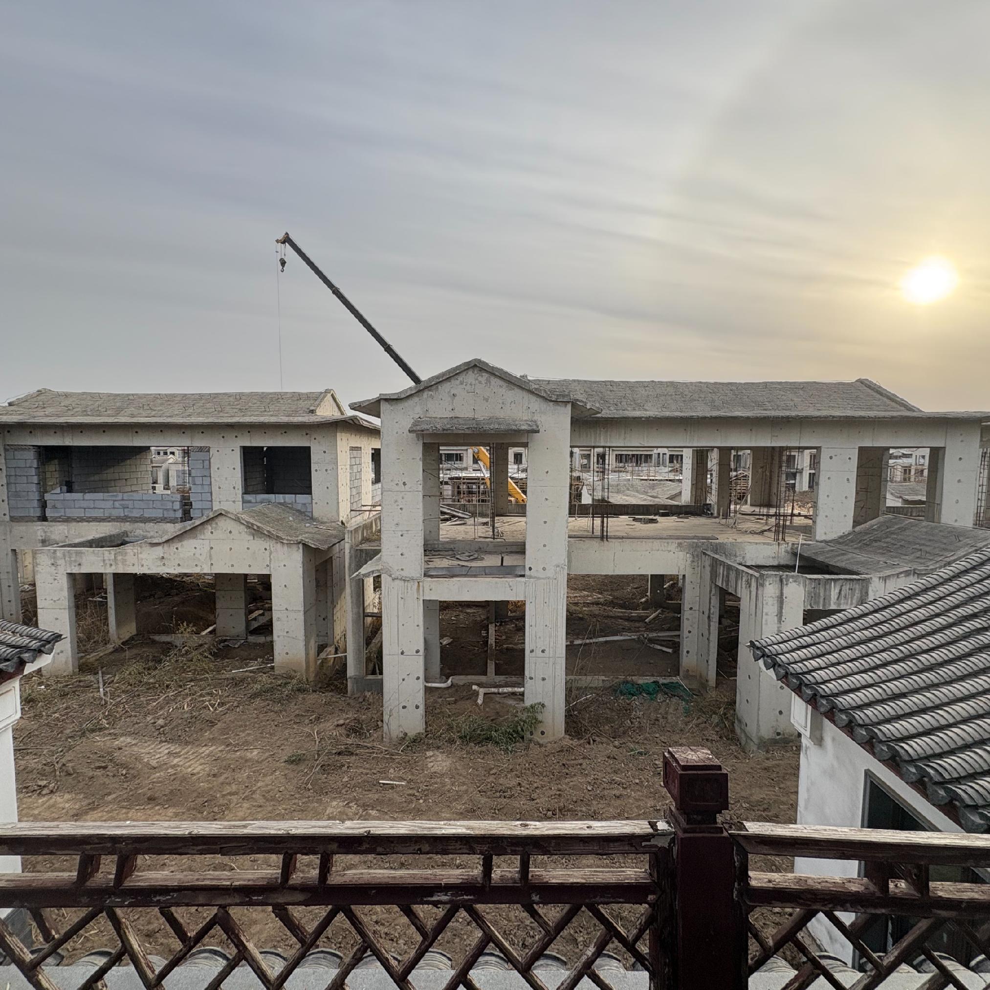 住宅区大部分建筑处于在建和修复状态,不少工人分布在不同区域建造主体、修建围墙、翻新屋顶等。仅有靠近商业区的少量合院和联排主体接近完工,正在进行地面平整。